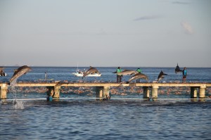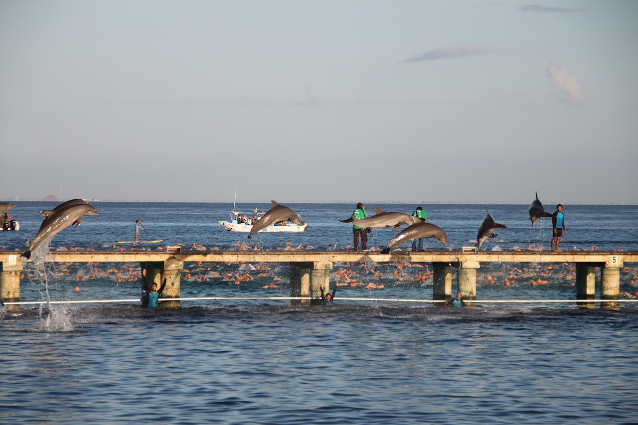 Delfiner! Svømmingen er i gang i bakgrunnen