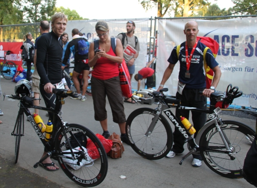 Etter IM Sveits der syklingen gikk som en drøm og Scott-en var upåklagelig. Til høyre er min britiske treningskompis og «Partner in crime» som kom i mål kun 4 min etter meg.