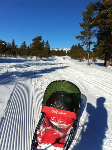 I dag er jeg mye mer positiv til den norske vinteren. Min far har 50 års dag og det feires på Skramstadsetra fjellstue (første drikkestasjon på Birken) som han eier og driver med min stemor, Susanne. Derfor har jeg nettopp testet en nypreppet Birkenløype i utrolig fine forhold. 100 % skyfritt og vindstille. Dette var første gang jeg prøvde å gå med pulk og det var moro! Jeg fikk akkurat den lille ekstra motstanden jeg trengte for å få pulsen opp i en solid sone 1/lav sone 2. Perfekt restitusjonsøkt! Nå skal jeg bare ta en kjapp lunsj før jeg går på økt nr. 2 🙂