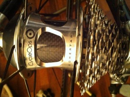 Mitt Cosmic Carbone SL Powertap hjulsett er endelig montert og tatt i bruk. Hjulsettet måler hvor mye krefter jeg tilfører hjulet, og gir en verdi med watt som måleenhet. Jeg brukte 3 min på å ”koble” sammen Powertapen med min Garmin 705, uten bruksanvisning selvsagt. Intuitivt og enkelt, akkurat som jeg liker det. Første test ble på en 3 t og 30 min tur på rulla der jeg mellom oppvarming og nedkjøring skulle ligge 3 t i lav sone 2. Gjennomsnittspulsen var 135 BPM med en gjennomsnittswatt på 167. Selv om jeg ikke har noen referanse er jeg fornøyd med tallene. Nå er det allerede wattmåling på rulla (Tacx Bushido) så noen revolusjon var det ikke akkurat der og da, men det var moro å ha alle tallene på Garmin-en. Det er når utesyklingen begynner at wattmålingen blir nyttig. Da er det lettere å se eventuell forbedring/forverring av form og lettere å kjøre jevn belastning (som jeg har hørt skal gjør underverker for løpingen).