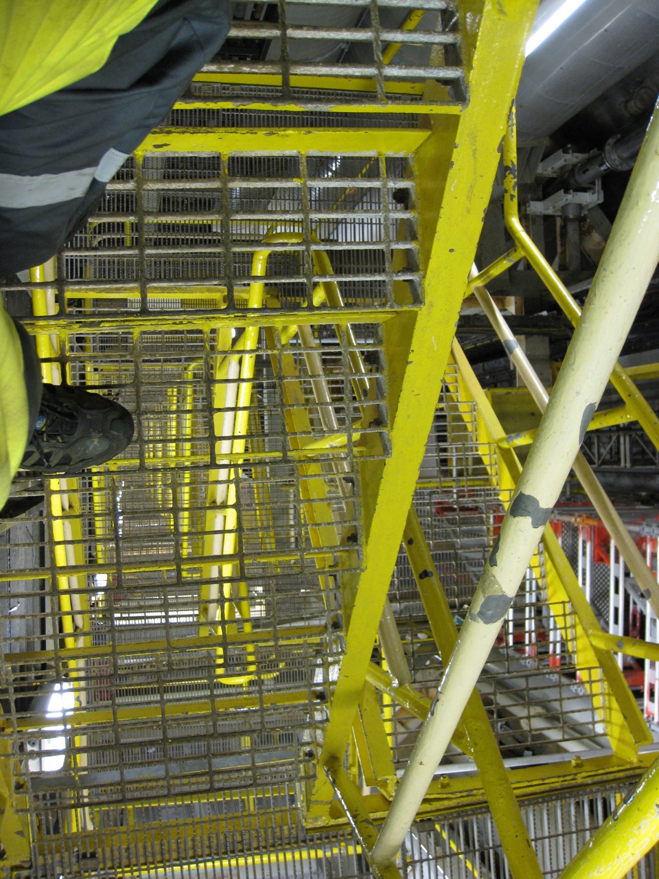 I motsetning til Fredrik så har jeg ikke utfordret min motstander i det han er verdensmester i, men noe jeg er god i. Nemlig trappeløp på Statfjord A. 171 høydemeter sammenhengende trapper. Statfjord A`s mannsdomsprøve! På akkurat det er jeg en soleklar ener, the best of the best. Det har selvsagt sammenheng med nivået på de som jobber på Statfjord A. Naboplattformen vår, Statfjord C, har hatt besøkt av Kurt Asle Arvesen (Ref vg.no) der han satt ”skaftet opp”-rekorden med nesten 2 min. Vi har aldri hatt besøk av noen eliteidrettsutøvere, før nå. I dag får vi besøk av Eldar Rønning og sporty som han er har han svart ja til min utfordring om å løpe skaftet opp. Dessverre så reiser jeg hjem når han kommer så vi har ikke mulighet til å løpe samtidig. Sikkert like greit siden trappene er så smale at det ikke er mulighet å løpe forbi hverandre. Derfor løper vi på tid. Raskeste fra dekket 49 meter over havbunnen til øvre dekk 220 meter over havbunnen. Bekledningen er kjeledress, hjelm, vernebriller, hansker og joggesko.
