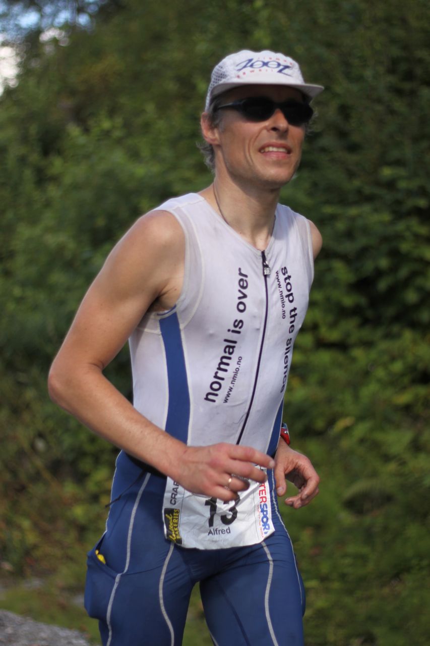 Først ut er triathlonguru Alfred som alltid kommer med de fornuftige svarene på forum. Det ble en fin 22. plass med tiden 13:05.