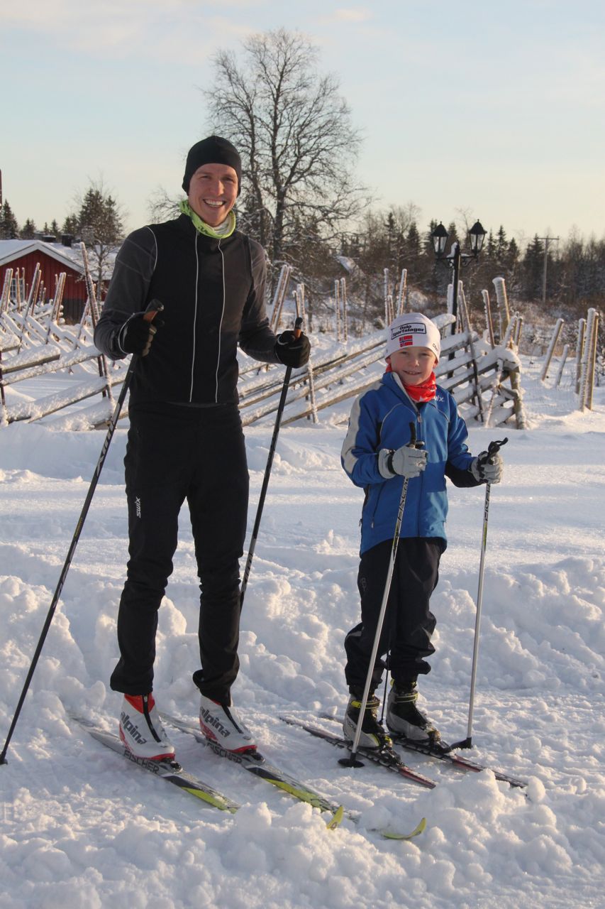 Skiforholdene har ikke vært de beste, men likevel har jeg logget mer treningtid på skiene i desember enn hele forrige sesong til sammen. Bildet er tatt på Skramstadsetra og gutten til høyere er min lillebror Emil. Til tross for en alder på 8 år så er han teknisk overlegen i forhold til meg når gjelder ski 🙂