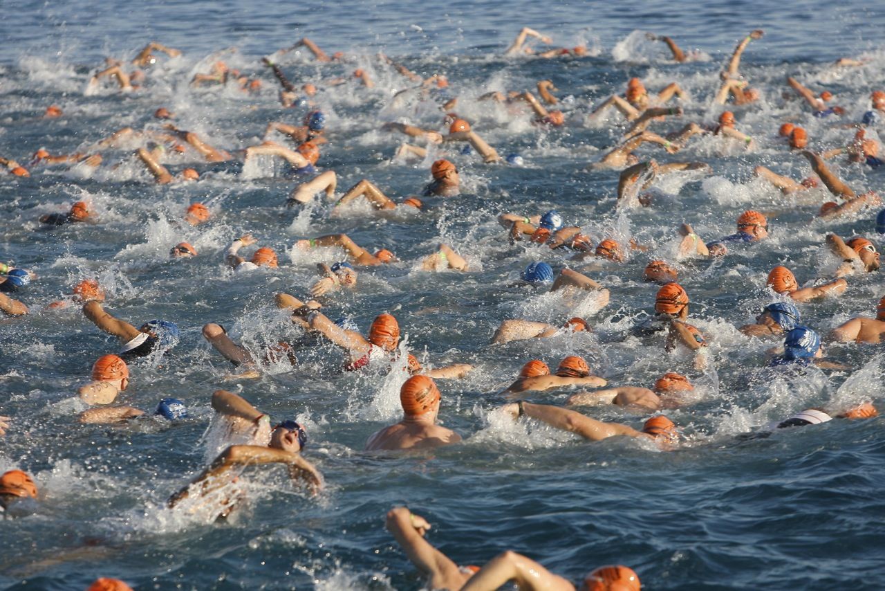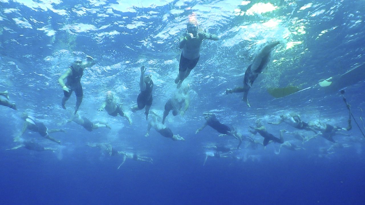 Med 27 grader i vannet foregår svømmingen uten våtdrakt