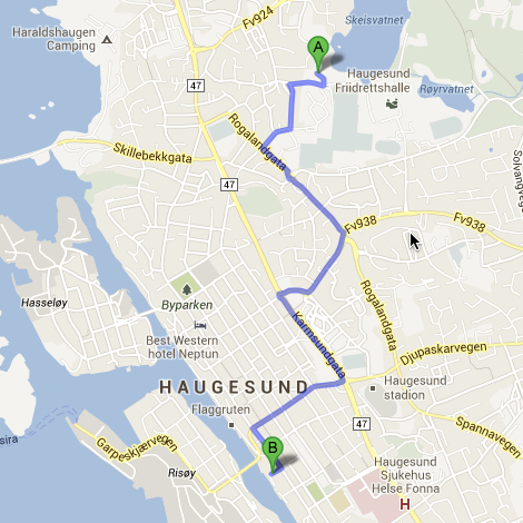Haugesund er en svært god arena for triatlon siden byen er kompakt og du kommer deg derfor rundt til de forskjellige stedene uten å ha behov for bil. I all hovedsak foregår IM Haugesund på to forskjellige steder, Skeisvatnet (svømming, T1 og T2) og Rica Maritim på Indre kai (målområdet, expo, registrering og prerace brifing). Det er bare et par-tre kilometer mellom stedene, mao perfekt sykkelavstand, og jeg anbefaler deg å bli litt kjent med begge stedene og veien ditt.