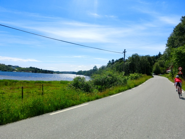 Er er et bildet fra mandagens sykkeltur og motivet er løypa og Viksefjorden (syklet motsatt vei). Her er det få farlige svinger og bare til å gi gass!