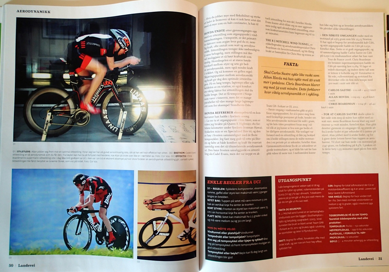 Som noen sikkert har fått med seg så var jeg en tur i vindtunnel i april, og nå har endelig rapporten fra dette kommet i magasinet Landevei, som er til salgs på din lokale blad-pusher som f.eks. Narvesen. Om det er en utgave av Landevei mine lesere bør kjøpe så er det nettopp dette. Det står mye informasjon fra vindtunnelen i tillegg til test av fire aktuelle tempo/triatlonsykler. Bladet forøvrig er meget bra, og et abonnoment med 8 utgaver til 399 kr er intet mindre enn et kupp (selv om du da ikke får utgaven som er ute nå).