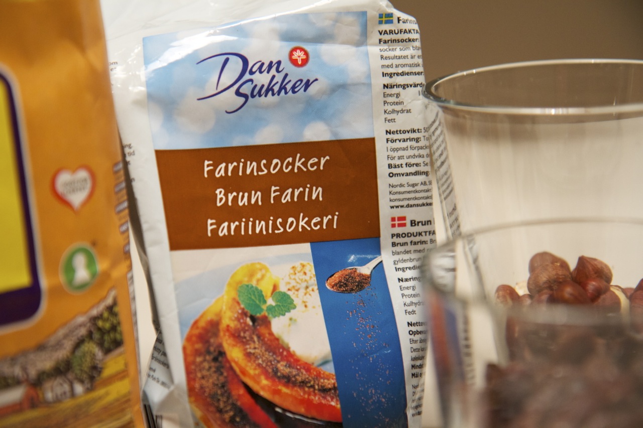- 1 kopp/150 g brunt sukker