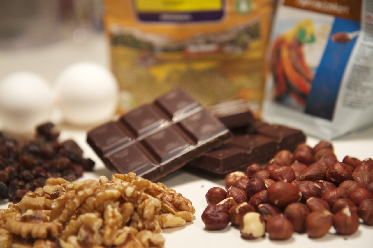- Hakk opp hasselnøttene/valnøttene og kutt opp sjokoladen i små biter