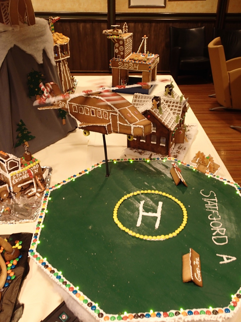 Triallan - Jul på Statfjord ADet legges mye prestisje i pepperkakehus-konkurransen og årets helidekk med både omfattende belysning og et landende helikopter med roterende rotor og halerotor var min favoritt.