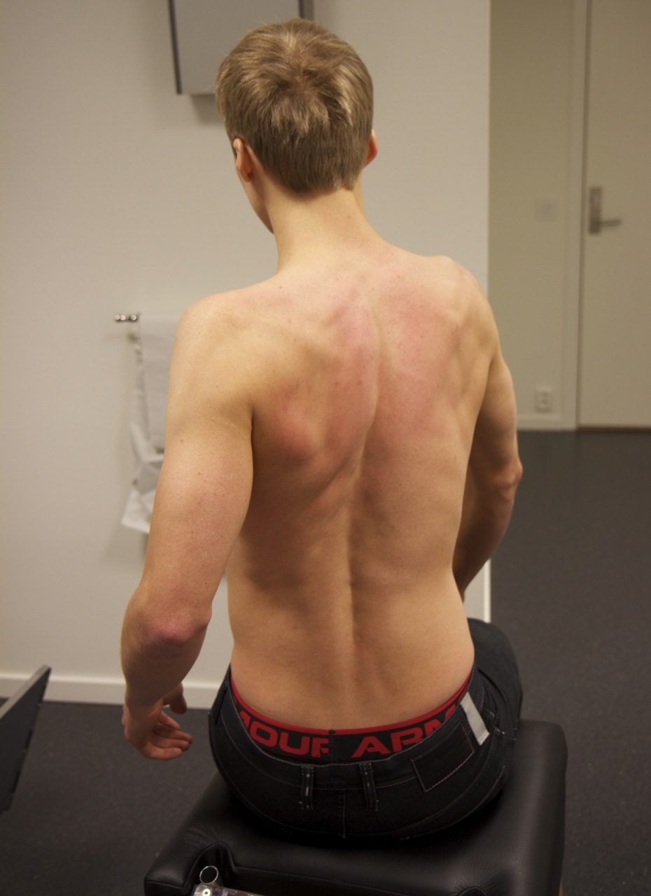 Etter en sjekk av ryggsøylen der jeg sitter rett opp og ned på en krakk og roterer overkroppen til begge sidene så kunne den konstanteres at jeg hadde låsning/stive ryggvirvler i korsryggen, nedenfor skulderbladene og i nakken, som totalt utgjør ca. halve ryggsøylen. Disse ble løst opp i knasende stil og Kristian jobbet mye med musklaturen rundt venstre skulder i en blanding av fysisk strekking og løsing av triggerpunkter. I tillegg gikk vi igjennom noen ustrekningsøvelser jeg kunne gjøre selv for å øke fleksibiliteten enda mer.