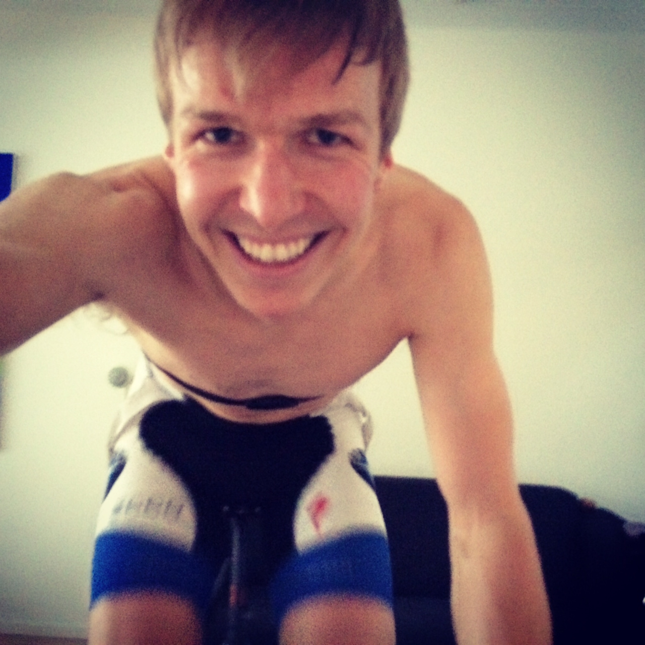 Tirsdag: 1 t og 10 min sykkelintervall med 10 x 4 min i sone 3 (300 watt) + 4 x 1 min på 380 watt. 1 t svømming med 20 x 50 meter sprint som hovedserie. 30 min rolig løping.