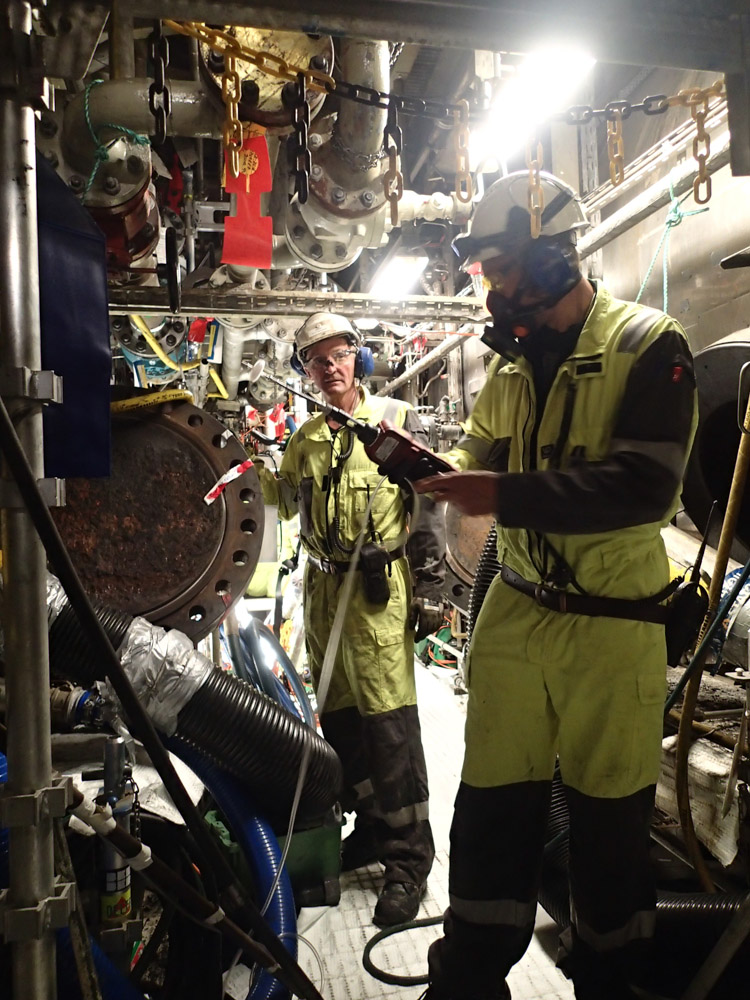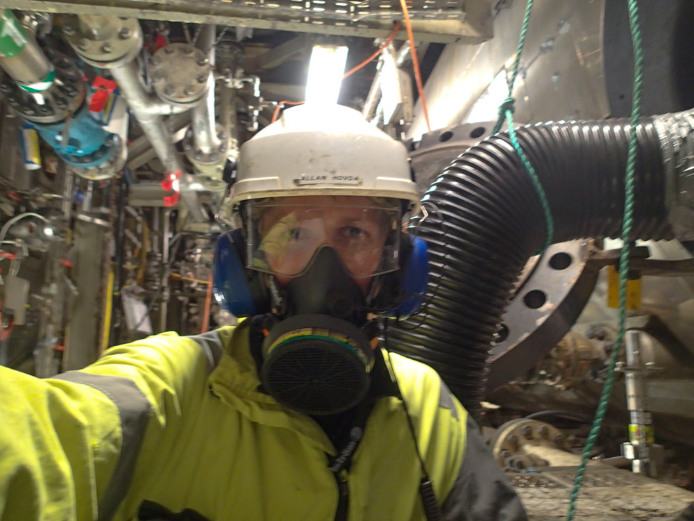Rengjøring av oljeseparatorer er noe av de mest tidkrevende vi gjør og gassmåling og riktig verneutstyr er utrolig viktig for et langt og sunt liv. Under revisjonsstans så har vi en sjelden mulighet til å se utstyret vårt fra innsiden og det er jo litt kult da, for oss spesielt intresserte.