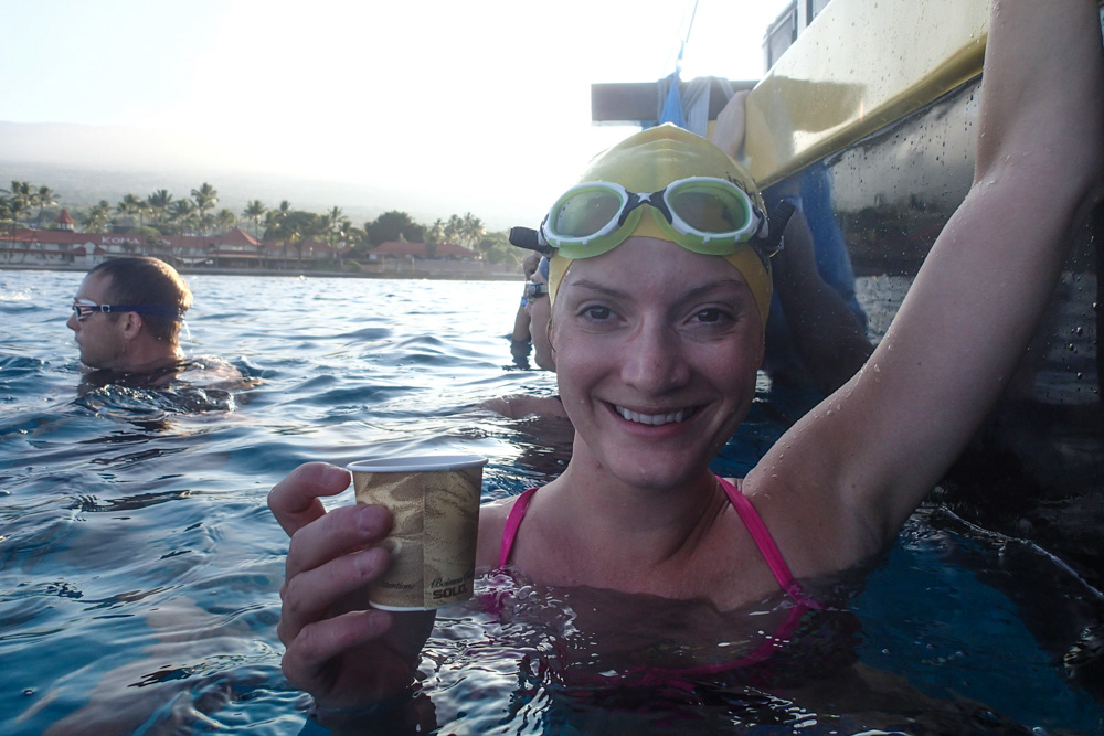 Siden Finisherpix-bildene fra Hawaii lar vente på seg, og jeg derfor ikke får lagt ut Race Reporten som var ferdigskrevet for på onsdag så tenkte jeg å legge ut et innlegg om kaffebåten på Hawaii. Mens «sydenturister» drar på Booze cruise, så har triatleter sin egen variant. I uka før Ironman Hawaii så settes det opp en båt ca. 400 meter fra Pier-en, den såkalte Dig me Beach, der det serveres gratis kaffe og gis ut diverse gratisprodukter fra sponsore. Konseptet er utrolig bra, og om du uansett skal ha en kaffekopp om morgenen så finnes det ingen bedre måte enn å svømme ut i azurblått hav med nærmest kroppstemperert vann og nyte en liten kopp kaffe til soloppgangen 😀 Om du først har kommet deg til Hawaii i uken før Ironman så er dette et must!