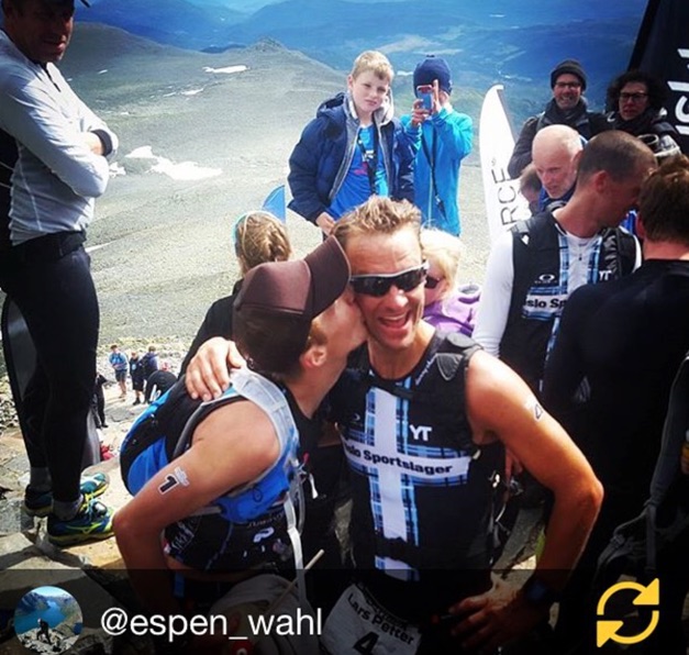 Seierskyss - Lars Petter - Allan - NorsemanHvem er det som kysser Lars Petter?, tenkte jeg først når jeg så bildet på mobilen. Det var visst meg det jo. Det hadde jeg helt glemt ut, men såpass glad er jeg i konkurrentene mine 🙂 Lars Petter har slått meg på alle de tre konkurransene vi har deltatt på tidligere i år og jeg viste at jeg virkelig måte prestere om jeg skulle revansjere det. For å sette det i perspektiv så «gruset» jeg alle i fjor med en solid løpsrekord. Lars Petter slo den løpstiden med over 7 minutter! Lars Christian løp også på under 4 timer og forbedret sin egen pers fra i fjor med 20 minutter 😀