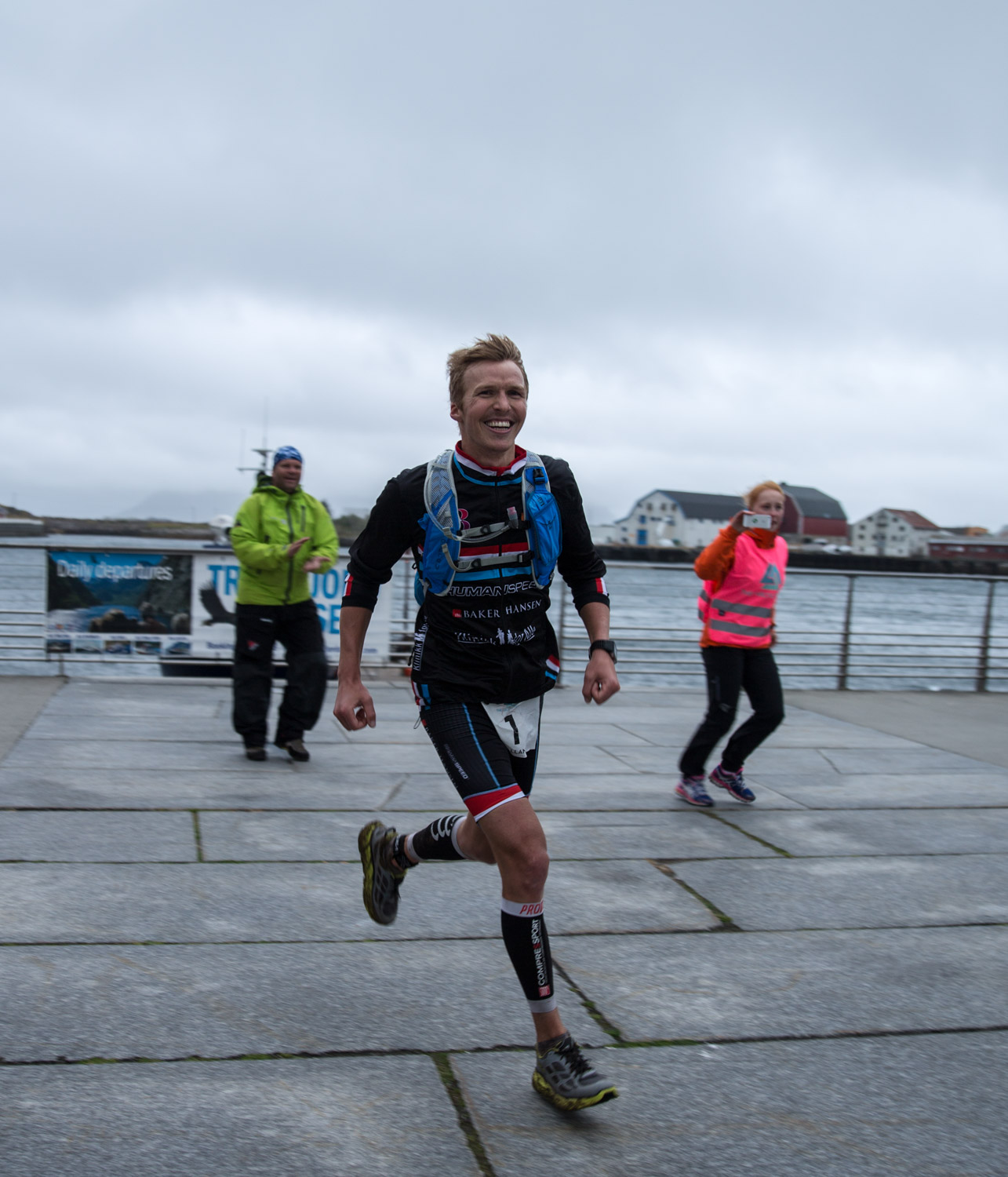 Stemingen ved T2 på torget i Svolvær var god og etter å ha tatt av meg sykkeljakka, hanskene og tatt på joggeskoene så løpe jeg ut med god fart og gode bein til tross for tøff sykling.