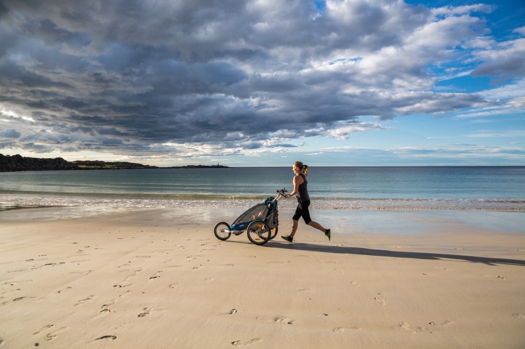 Fra vognas styrke går jeg over til vognas svakhet, nemlig løping. Sammenlignet med rene løpevogner føles vogna i overkant tung, både i vekt og respons på styringen. Av en eller annen grunn så trekker også svakt til venstre. Den fungerer absolutt til løping, men det går ut over løpsfølelsen i større grad enn jeg skulle ønske. Et styre som ikke er justerbart på høyde gjør at hverken jeg eller Jenny får optimal styrehøyde. Dette problemet har de adressert i den nye versjonen av vogna som ble lansert for kort tid siden.