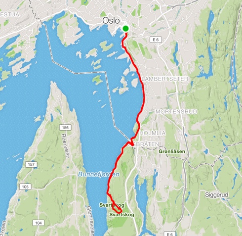 Fra Oslo sentrum sykler du raskest til Svartskog kolonial ved å følge sykkel- og gangstien ut til Hvervenbukta for så å ta til høyre skiltet mot Ingierstrand, der du følger veien helt ut, opp en lang og bratt bakke der du tar til høyre i første kryss, og så ned til høyre ved neste T-kryss. Det er 17 km hver vei. Det er litt kort for en langtur på sykkel, men for oss er det en perfekt ettermiddagstur med sykkelvogn. Hvis du ønsker å ha Svartskog kolonial som et stoppested på langturen din så anbefaler jeg følgende; å sykle videre inn på Follo sine fantastiske landeveier før du tar til venstre skiltet mot Svartskogen når du sykler på Gamle Mossevei langs Gjersjøen. Det er en kort og veldig flott liten omvei når du skal på tur hjem igjen.