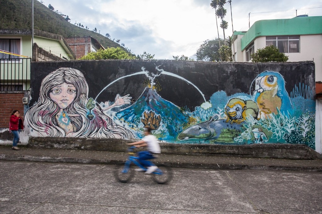 Or pet an AlpacaBanos – After a good breakfast at the Black Sheep Inn and a hike in the mountains above we started the 3-hour drive to Baños. We had heard so much nice thing about this small city, with its great adventure options and location close to the rainforest. Driving into Baños, Ivan gave us a quick tour around the city could and inform us that this was the Baños. Jenny and I looked at each other with a look and thought, WTF? The poorly maintained buildings were in an anarchistic mix of building styles and colours. They were accompanied more or less successful street art and power lines looking like an electrician’s nightmare. When other people described Baños as nice they could by no means meant beautiful. Baños had other qualities which actually made it very nice. We checked in at La Posada del Arte, which was owned by an elderly American hippie couple. We grabbed some food from the local bakery and explored the better parts of Baños. Located in a valley the city is surrounded by mountains, but unlike Quito, they are steep and covered with trees. There is a hike up to the “Virgin of Baños” with a great view over the city. From there you can continue upwards until Café del Cielo and enjoy a “chocolate caliente”, hot chocolate with a panoramic view over Banos before continuing along the path that takes you down back to the city. The trip is not very demanding, but can take a couple of hours, and will give you good appetite afterwards.