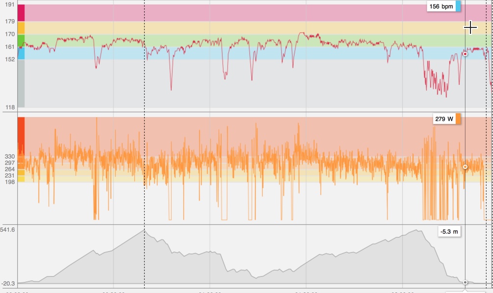 The transition did not go as smooth as it should, and getting on the bike was rather clumsy (note to myself: train on it a few times before the next race). While on the bike I felt good. Not great, but solid. I started out at around my planned race intensity for the early segment, just around 300 watts. The first part is flat and fast out on the highway out of town. It does not take long before the course turns against the mountain and becomes steep. Earlier I had been riding as even as possible with only slightly more power in the hills compared to flat and downhills. Using the BestBikeSplit analysis program I have understood that a bigger variation gives more speed for the watts (and total fatigue). As high as 360 watts going uphill and as low as 260 in the flats with the wind in the back. I gained ground in the field always passing, never getting passed. As we did a small out-and-back stretch I could see that there was plenty of pros ahead of me, but the gap was not huge. It motivated me to keep on pushing. Shortly after I passed Boris Stein, the guy with bib nr. 2 in an uphill. In the long downhill which followed I got in deep aero position as I span out my 53/11 gear combo. Then Boris Stein came from the left, sitting on the frame. Another guy followed in the similar fashion. I have tried it a few times but always concluded that it is too unstable and also a bit straining for the legs. Painfully seeing the effect of not doing it made me rewrite my conclusion. If the downhill is steep and steady, always get down on your frame.