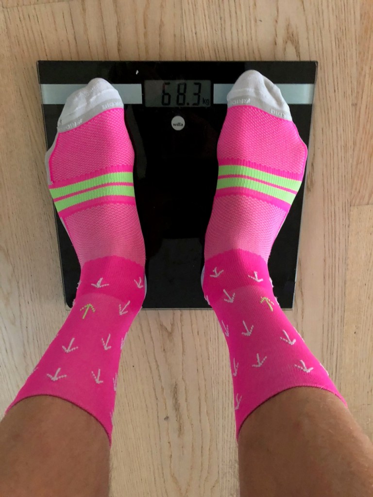 Weighing myself before the ride to keep track of fluid loss