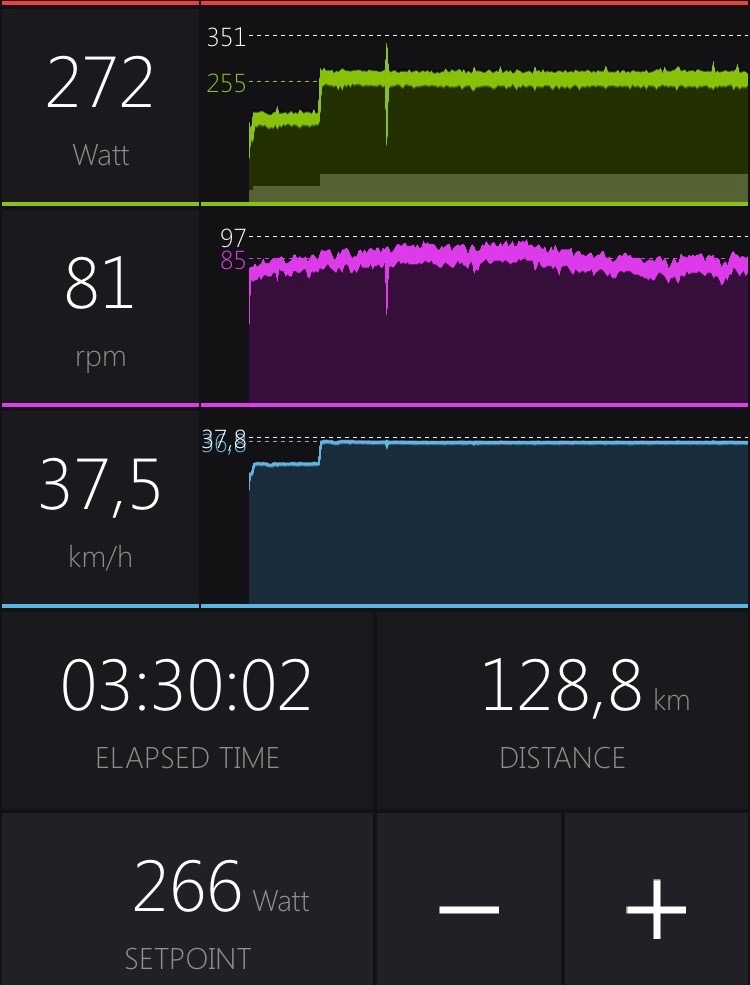 266 watts for 3 hours straight with a total of 8 min out of aero position (1 min each 15 min starting from 60 min). Fun stuff 😉