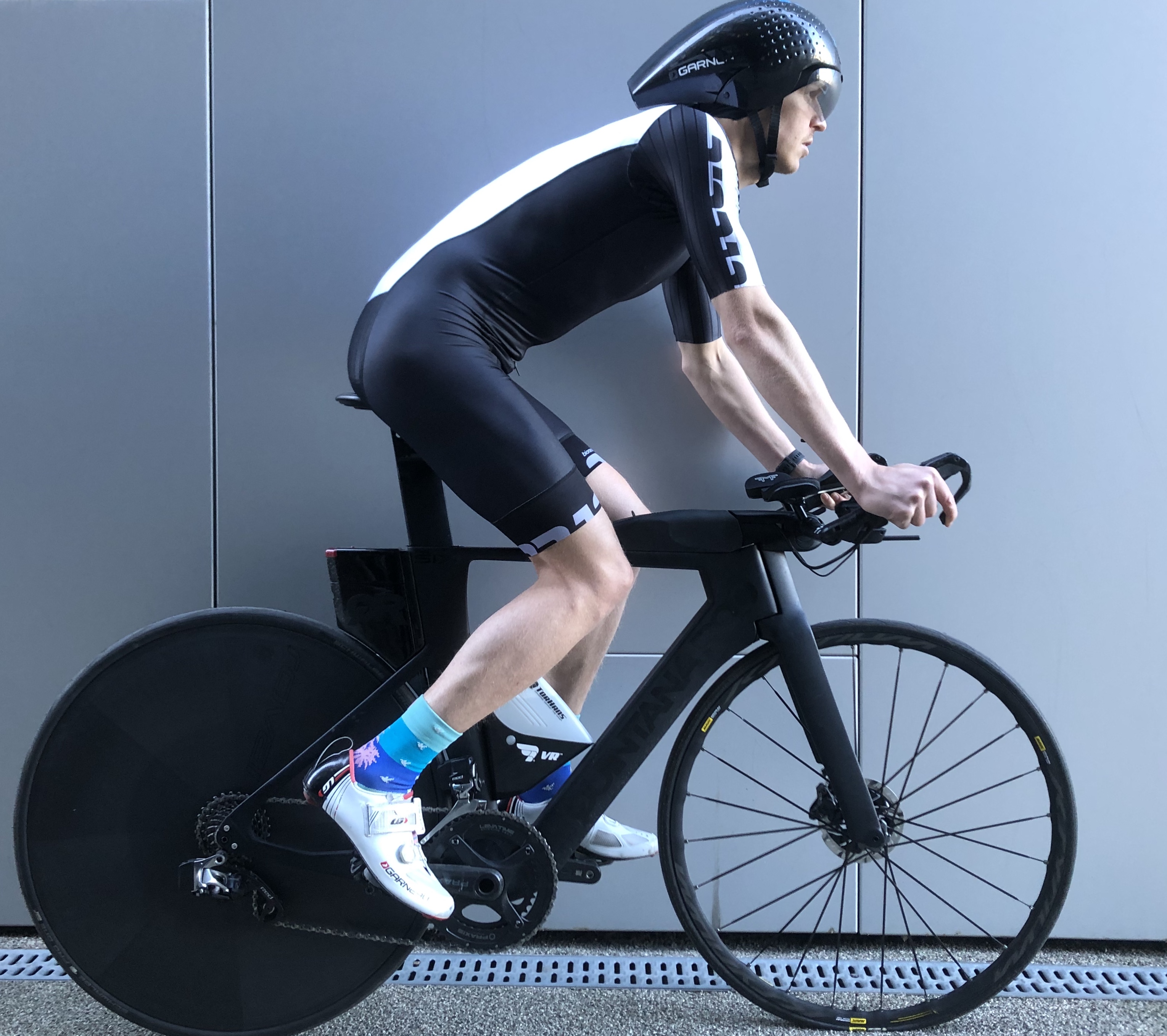 The rider accounts for roughly 80 % of the aerodynamic drag. Less for a good position and more for a bad position. Then you might think that the rider’s position is very important for the aerodynamic and overall bike performance. That is absolutely correct. Rule #1 for improving aerodynamic performance is, therefore, to focus on the bike position. Do that before clothing, wheels, aero helmet and bike (getting the optimal position most likely require a triathlon/TT-bike). A very common sight in races, especially the latter part of them, is seeing AG-athletes with top-of-the-line triathlon bike, high profile wheels and aero helmet sitting upright(!).