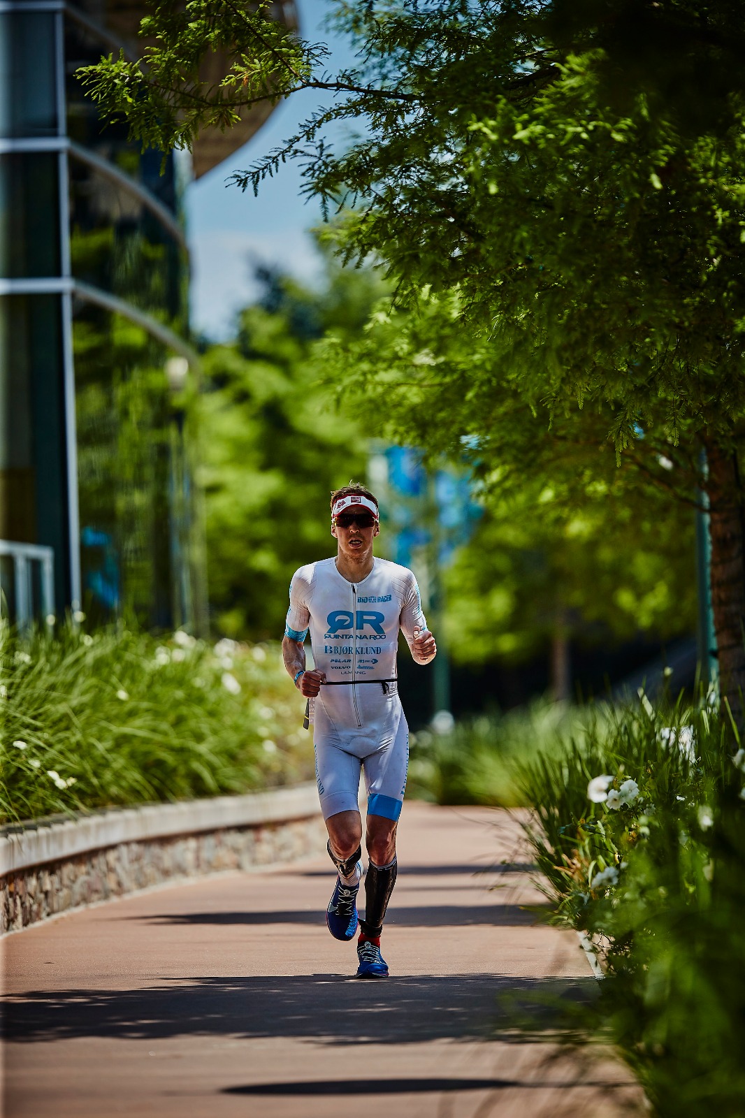 When racing in heat avoiding the hard efforts are much more important as your body are nearly unable to bring down the heat without stopping. The run course in Texas is beautiful 14km lap, and in contrast to the highway, it is highly varied and entertaining. Music, people, paths shadowed by trees (thank God for that) and beautiful views of Lake Woodlands.